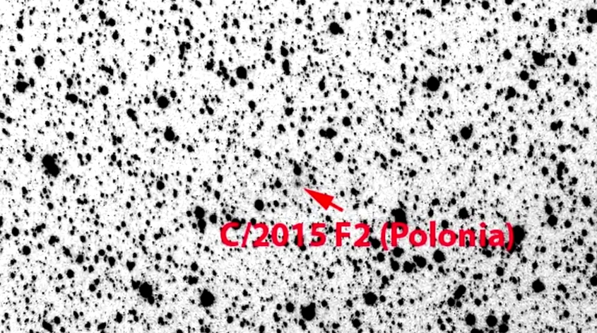 Dlatego, w grudniu 2014 roku przeniósł się z badaniami do Chile, na znaną pustynię Atacama, gdzie przez większość część roku panuje piękna bezchmurna pogoda. Po kilkumiesięcznym poszukiwaniu, 23 marca 2015 roku, Michał Żołnowski razem ze swoimi wspólnikami, Michałem Kusiakiem, Marcinem Gędkiem oraz Rafałem Releszelewskim, dokonali spektakularnego odkrycia komety, którą nazwali C/2015 F2 Polonia.