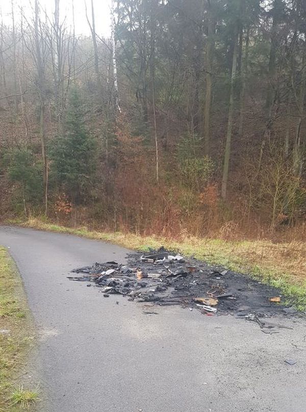 Śmieciarze nie mają chyba żadnych zahamowań. Wyrzucanie do lasów odpadów jest nagminne. Tym razem, pod osłoną nocy, ktoś wyrzucił śmieci w Dąbrówce i je podpalił.