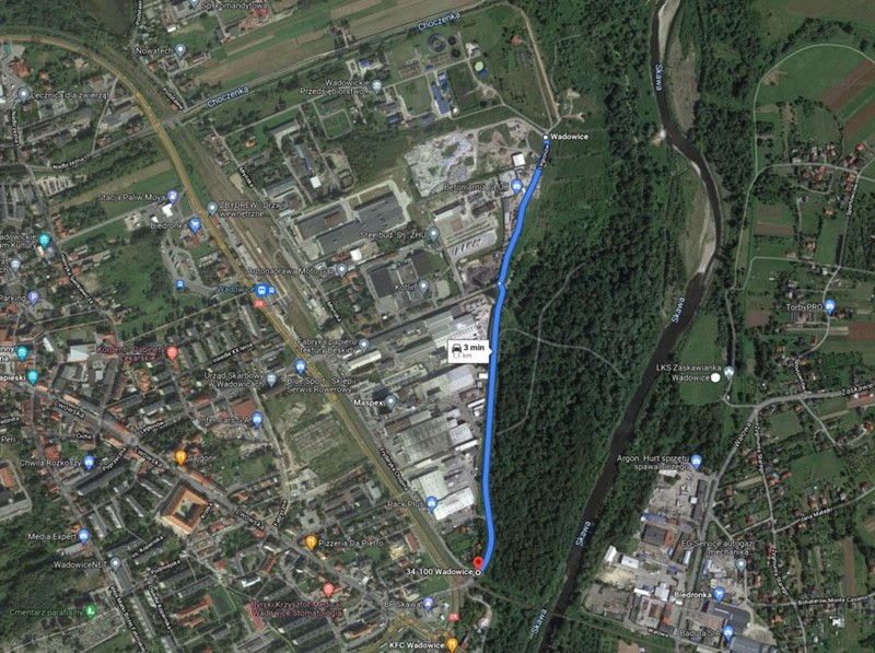 Nowa trasa ma docelowo przedłużyć obwodnicę w kierunku północnym, wzdłuż rzeki Skawa, i połączyć z ulicą Krakowską w Tomicach.