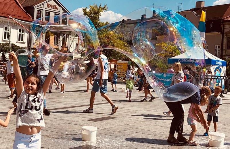 W tym samym czasie wadowicki rynek opanowały wielkie bańki. To za sprawą Dnia Baniek Mydlanych.