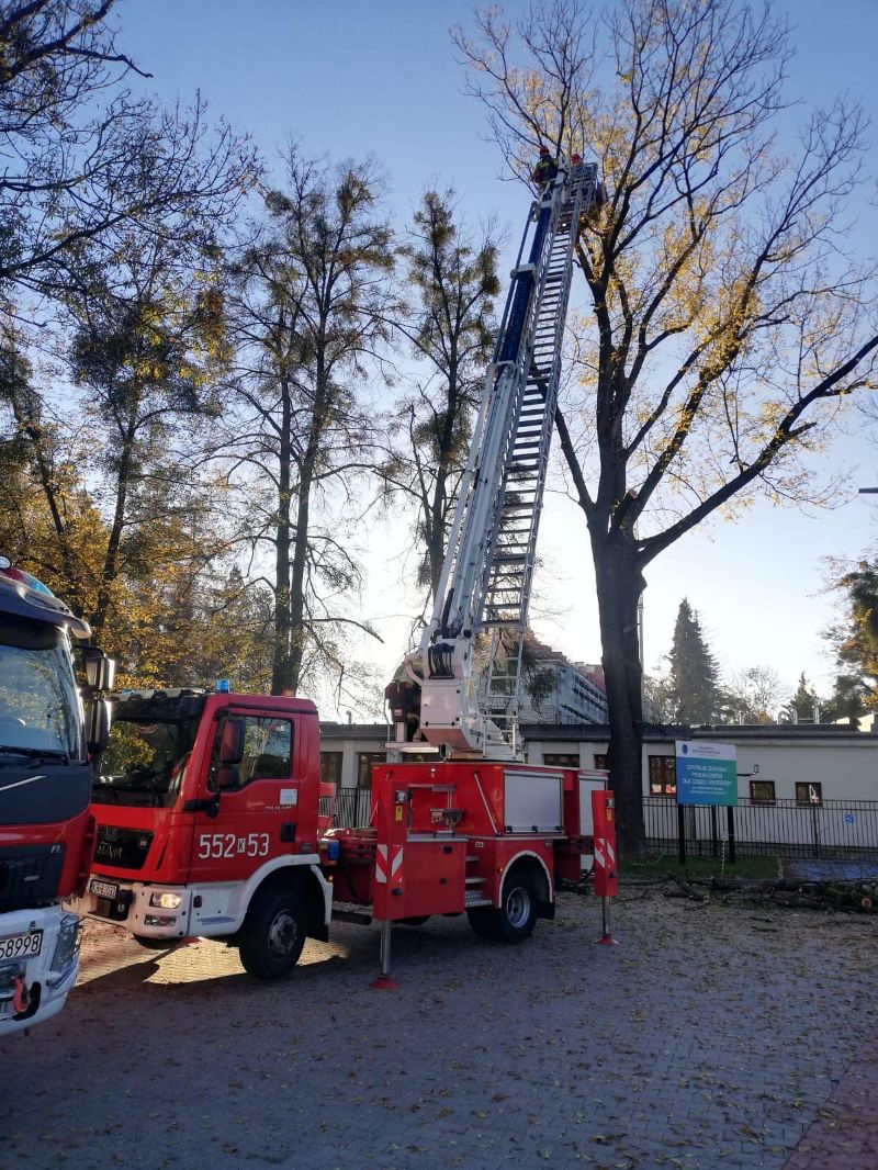 Strażacy byli zmuszeni interweniować w okolicach szpitala psychiatrycznego w Andrychowie. Zwisający ciężki konar drzewa zagrażał przechodniom. Na szczęście nikomu nic się nie stało.