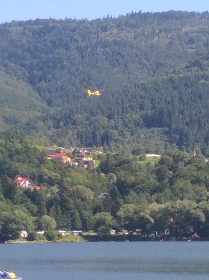 W działaniach oprócz strażaków wzięła również udział policja, WOPR i jednostka z straży pożarnej z Żywca. Na miejsce wezwano też helikopter Lotniczego Pogotowia Ratunkowego ( fot. Sylwester Gorząd Waszym Okiem Radio Bielsko).