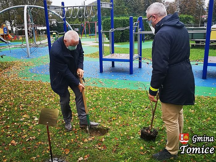 Sadzonkę wkopali osobiście wójt oraz Józef Żegliński, dyrektor Zespołu Szkolno-Przedszkolnego w Tomicach.