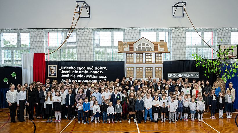 W Dąbrówce jego postać jest hołubiona między innymi poprzez wpisanie imienia Janusza Korczaka jako patrona szkoły. Podstawówka postanowiła teraz ufundować sobie sztandar, który będzie ważną identyfikacją placówki.