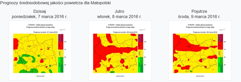 Choć w poniedziałek (7.03) jest całkiem dobrze, to już w Dzień Kobiet (8.03) i dnia następnego, znowu oddychać będziemy rakotwórczą mieszanką. Dlatego warto wziąć pod uwagę potrzebę spacerów na „świeżym powietrzu”.