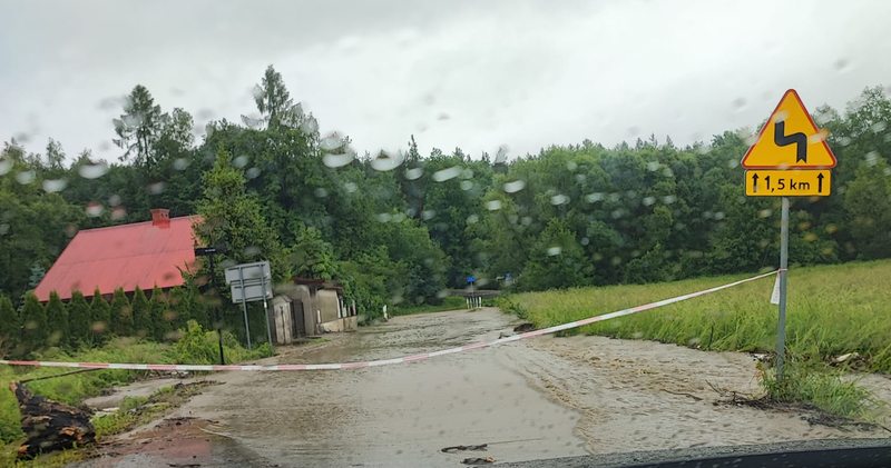 W Jachówce w pow. suskim woda spływająca z gór całkowicie zalała drogę. Podtopione drogi są także w Makowie Podhalańskim.