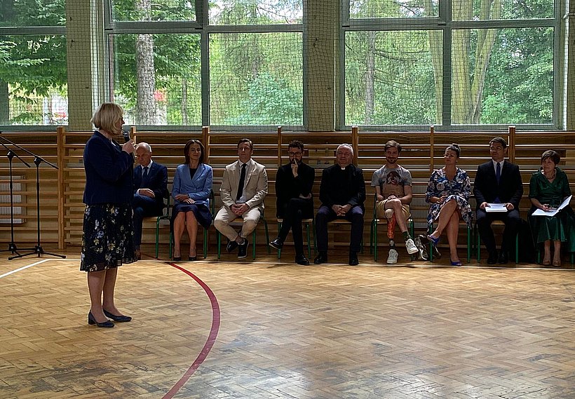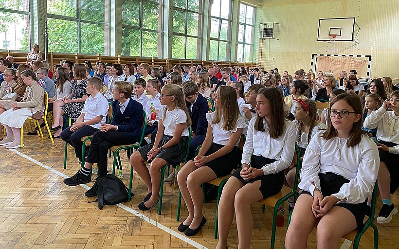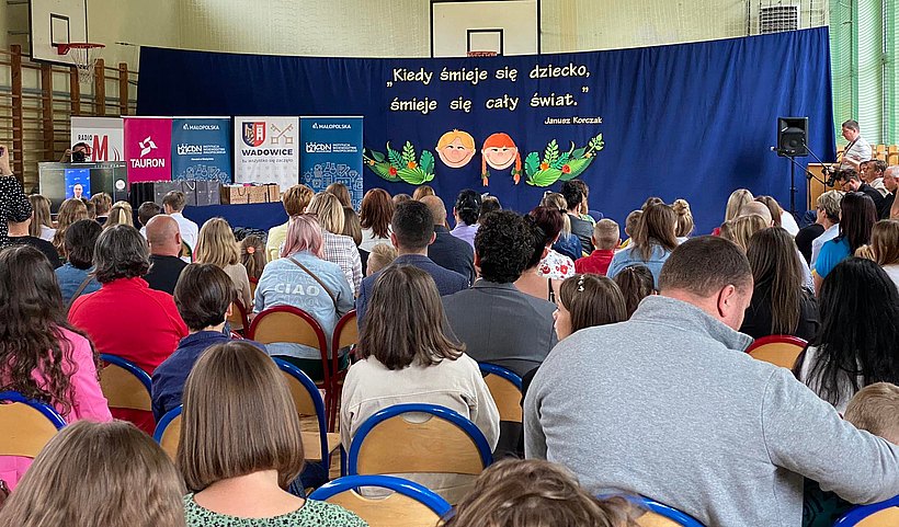 We wtorek (21.06) do Szkoły Podstawowej nr 5 w Wadowicach dzieciom kazano przyjść na galowo, a rzecznik przemawiał do uczniów z telewizora. Aby dorośli mogli się zaprezentować przed uczniami, szkoła zorganizowała konferencję na sali gimnastycznej w trakcie zajęć lekcyjnych.