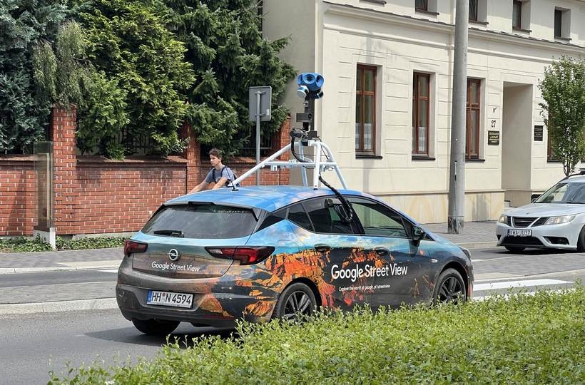 Google posiada flotę samochodów wyposażonych w specjalne urządzenie wykonujące zdjęcia sferyczne.