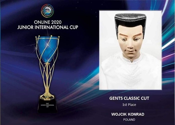 Konrad zdobył złoty medal w kategorii kategorii GENTS Classic Cut fryzura klasyczna męska oraz piąte w kategorii fryzura CREATIVE.
