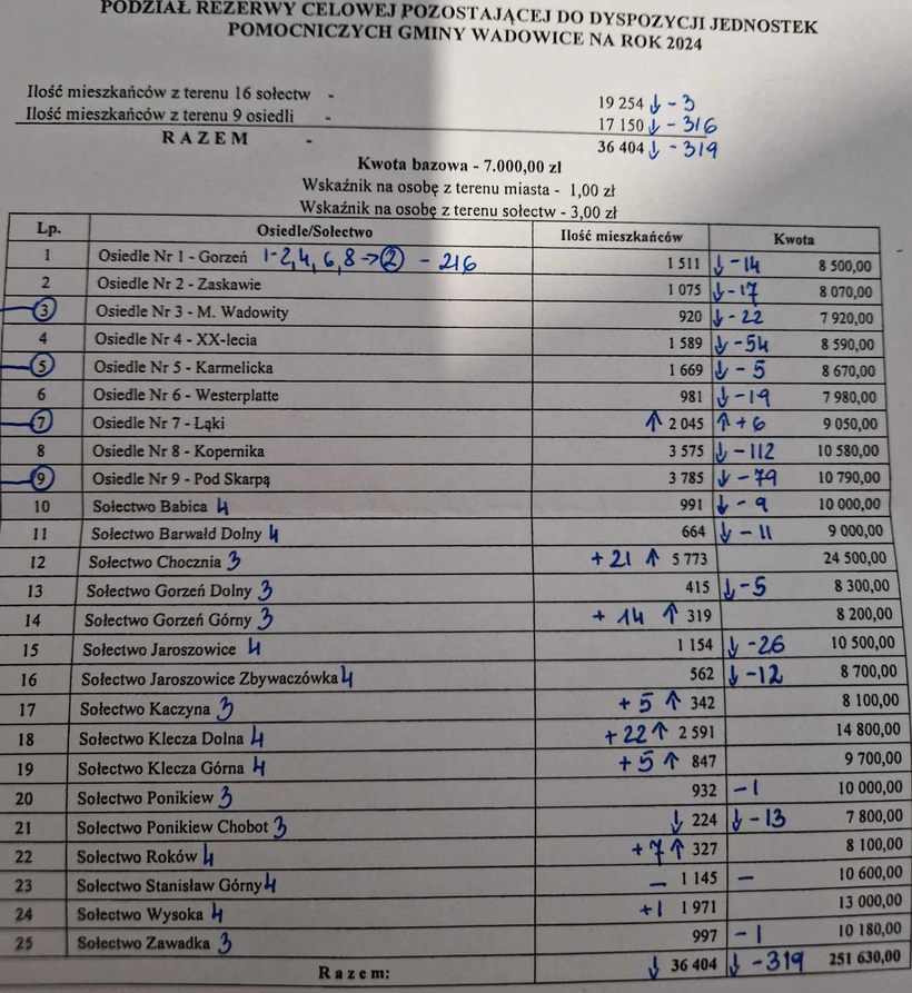 Co roku w samorządzie przy szacowaniu budżetów osiedli i sołectw gminy Wadowice, które są szyte według liczby ludności, wychodzi smutna prawda. Od lat w gminie Wadowice ubywa mieszkańców. 2023 rok pod tym względem również nie napawa nadzieją.