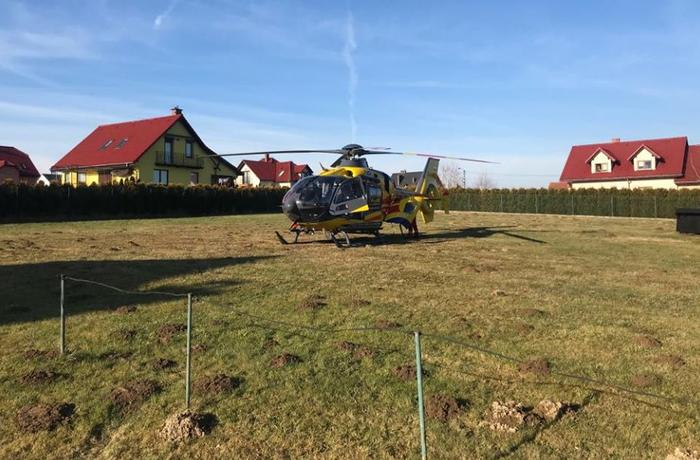 Poważne obrażenia twarzy poszkodowanego zmusiły ratowników do wezwania śmigłowca Lotniczego Pogotowia Ratunkowego.