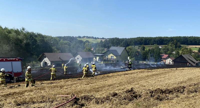 To kolejne tego typu zdarzenie w tym samym dniu. Nad ranem strażacy interweniowali w Wieprzu, gdzie w ogniu stanęły bele słomy ułożone na skoszonym polu zboża. Strażacy z Wieprza i Andrychowa szybko rozprawili się z ogniem.