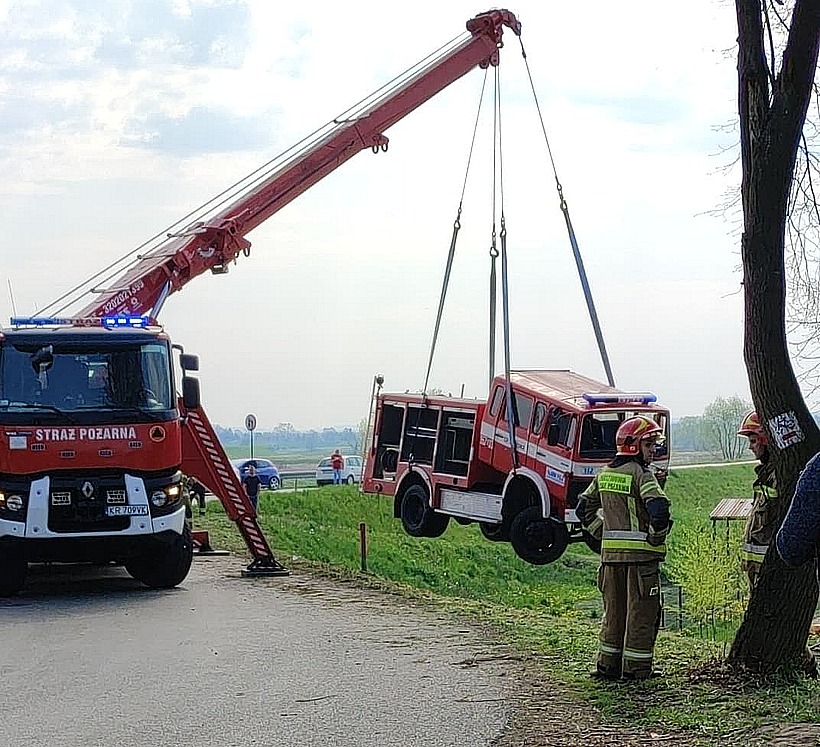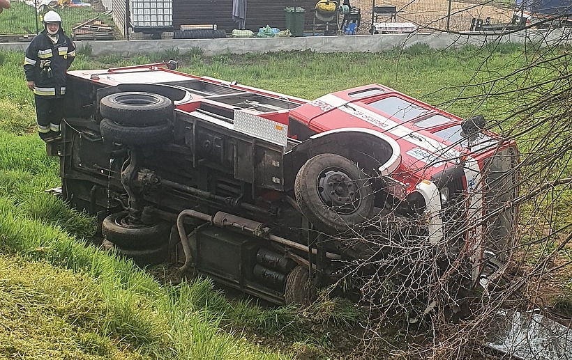 W pobliżu zapory w Łączanach strażacki wóz nagle zjechał z wału i koziołkował w rowie. Teraz to druhowie z Chrząstowic znaleźli się w opałach i prosili o pomoc.