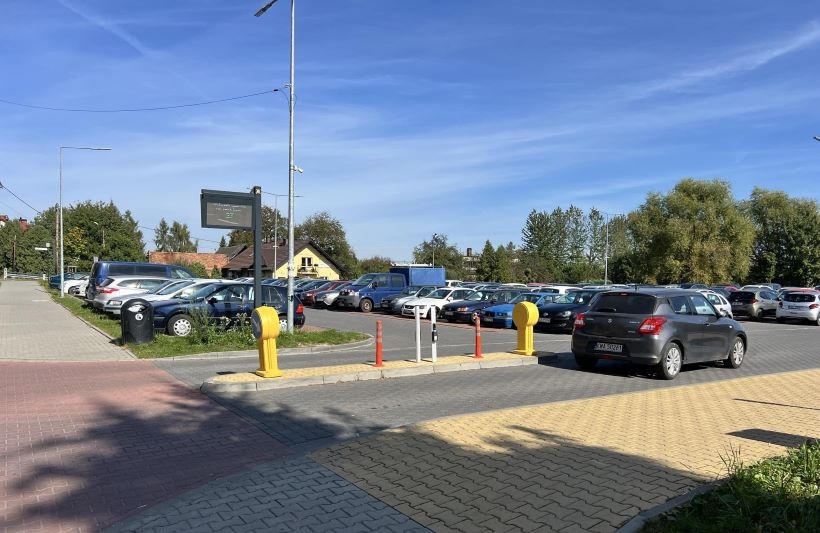 Parking przy ulicy Sienkiewicza jest jednym z kilku darmowych parkingów miejskich w Wadowicach.