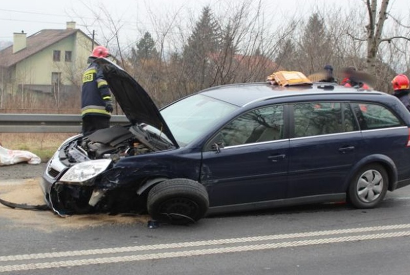 Dwie osoby ranne zabrano do szpitala w Wadowicach z wypadku na drodze krajowej nr 52. Na prostej drodze wpadły na siebie auta osobowe.