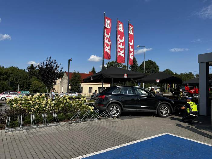 To był moment. Kobieta kierująca audi wjechała w ogródek restauracyjny pod KFC w Wadowicach. Dwie osoby zostały poszkodowane, w tym 7-letnie dziecko.